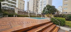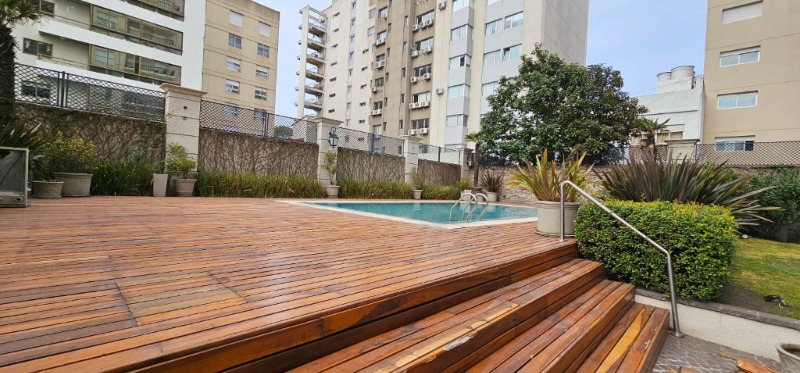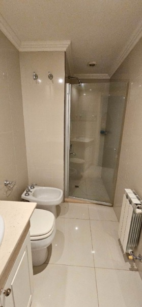 Amplio living comedor, c/ balcón frances. 7x3 ..Aire acond. Toilet. Cocina comedor c/ conexión lavarropas. 2 dormitorios en suite. Uno al frente con vestidor y otro al contrafrente con placar. Pleno sol de tarde. Calefacción x radiadores. DVH. Amenities. Quincho, Gimnasio. Piscina climatizada , Laundry. Sauna. Vig. 24 hs. Sup. 80m2.