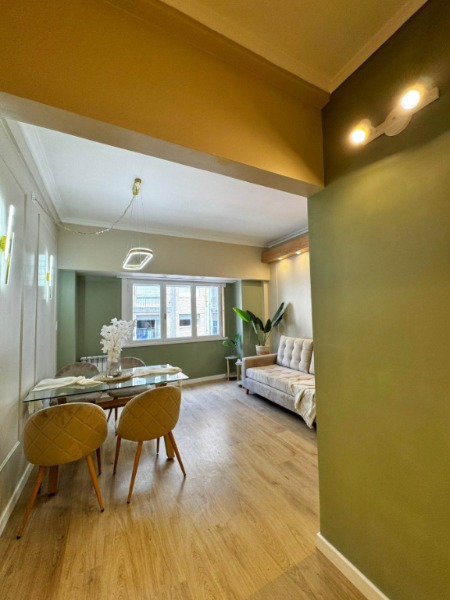 2 amb a la calle . Corrientes - Moreno 3er piso. Amplio living comedor a la calle Mesa de diseño con sillas y sillón de pana Rack TV en madera con detalle luces Led Pasillo de distribución con biblioteca en madera con luces led . Baño completo con Panel de ducha escocesa, con hidromasaje 3 Jets Monomando con duchador color blanco Cómodo dormitorio con placard a medida doble hoja con baulera Cocina alargada a medida. Con barra desayunadora Balcón al Contra Frente con espacio para lavarropas . Ideal secado de ropa con ventanal con DVH . Pisos flotantes vinilizados Cálidos, de fácil higiene de alto tránsito. Valor U$S 85.500 Sup. Aprox 39 mts Expensas aprox $ 110.000 Totalmente reciclado por arquitectos. PERMUTA menor valor zona similar. Acepta vehículo