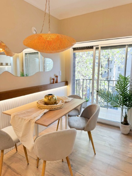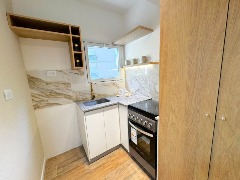 AMBIENTE C/ BALCON A la calle completamente reciclado .Falucho - Santa Fe 4º Piso Cómodo ambiente a la calle .Pisos y revestimientos en porcelanato. Cocina semiintegrada con barra desayunadora . Placard 3 hojas Finamente decorado , con sofá cama en pana gris . Mesa en madera y Hierro con 4 sillas en pana gris Cocina con amplio placard con espacio para lavarropas . Cocina 4 hornallas y horno . Baño con ducha escocesa Panel de ducha escocesa , con hidromasaje 3 Jets Monomando con duchador color negro Cañerías agua fría , caliente , desagües y electricidad a nuevo . Instalación reforzada eléctrica para un eficaz funcionamiento del inmueble . Exquisita decoración ideal 1 er vivienda o de renta . Sup. 26 mts Expensas $ 55.000.- Valor U$S 66.900
