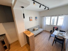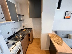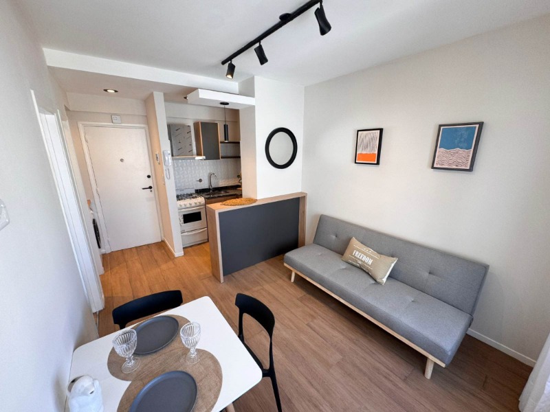 LIVING COMEDOR , COCINA SEPARADA CON BARRA DESAYUNADORA. TOTALMENTE EQUIPADA. BAÑO COMPLETO CON MAMPARA.