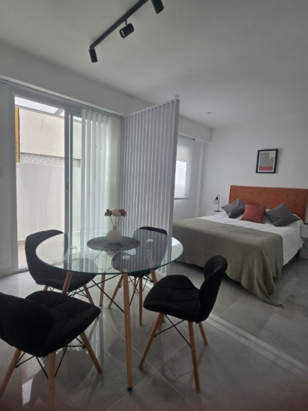 Ambiente de gran tamaño CON UN AMPLIO PATIO con iluminación natural. Falucho - Santa Fe . 1º piso . El ambiente es en concepto desplazado (dividido) al lateral. REFACCIONADO. Ambiente dividido con amplio ventanal de piso a techo súper luminoso, aire acondicionado frio calor, plantas, , cortinas, acolchado y decoración. Caja fuerte. Todo a estrenar!!! PERSIANA ELECTRICA. Cocina separada con lavadero (equipada con lavarropas a estrenar marca Philips, heladera con freezer nueva marca Philips, microondas nuevo marca Atma, Totalmente equipada con todos los utensillos necesarios. SUPER COMPLETO. Cortinado a estrenar. (COCINA Y AMBIENTE). Baño completo con mampara, inodoro y bidet Ferrum línea Bari, vanitory madera blanca laqueado, griferia Piaza, PATIO, detalles en madera, mobiliario, iluminacion solar, salida de agua nueva y gas (para futura parrila gas). REFACCIONADO. ( se cambiaron cañerías de cocina y baño). Obra de gas hecha en el edificio. Al departamento se le bajaron los techos (COCINA Y BAÑO). SE ENTREGA CON VAJILLA PARA DOS PERSONAS, SÁBANAS Y TOALLAS. (NO LE FALTA NADA. LISTO PARA HABITAR O ALQUILAR). Imperdible!!! VALOR: U$S 68.900 Mts 24 cubiertos aprox. Mts 19 descubiertos aprox. Total aprox. 43. Mts Expensas $ 110.000 aprox. Su valor: u$s 68.900.-